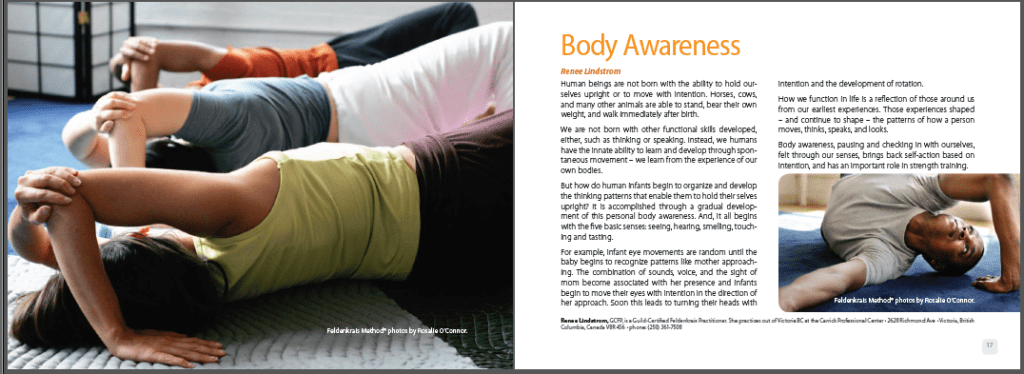 Feldenkrais®, Feldenkrais Method®, Awareness Through Movement®, Functional Integration®, are registered service marks of the Feldenkrais Guild® of North America. Feldenkrais Method®