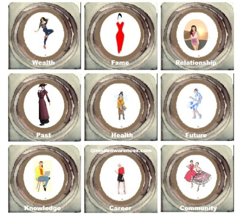 The origins of life are health and well-being. This applies to people, places and things. A person, family group, organization, business, community and country will express and experience all areas of life through the core dynamics of health. If the core is healthy, all other life areas will reflect this through ambition, balance and vitality that will attract opportunities, experiences and challenges. However, all life areas will influence, stimulate and reflect the health balance of the core experience and each unique life area. The life areas of; wealth, fame, relationships, past, future, higher education, career and community. All eight regions are influenced by health and well-being, and all eight regions stimulate health and well-being.