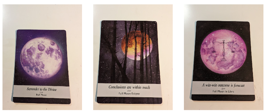 These are great cards to track the moon’s journey and interpretations to integrate the environmental influences they have in our relationships to people, places and things. On a trip to the Yucatan on a tour, Renee learned that the Aztecs began standing on the highest point at night to observe the universe. She learned the intention was to integrate the relationship of the movement in the sky to stimuli surrounding them. After this, she began paying more attention to the significance of this as a source of environmental influences. As a dominant somatic visual interpreter, she began to use these cards to touch in and observe shifts.
