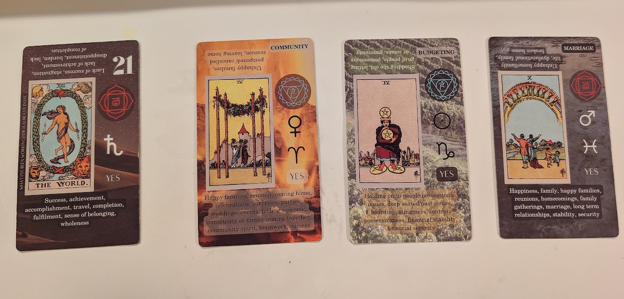This tarot deck expands on the original information of the original Rider Waite Deck. It meets a need for exploration, discovery and connections for Renee. It it a focus of attention for learning and may possibly increase cognitive abilities in aging.
