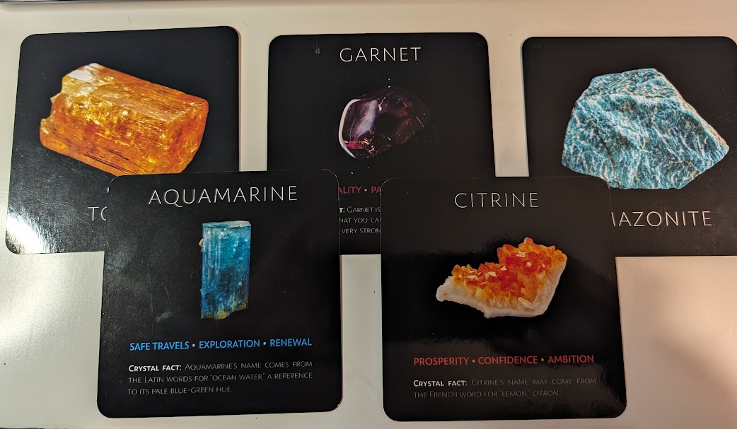 A deck of 50 cards introducing different crystals and stones that include facts and qualities that I call universal values. These cards are an educational tool for learning names and unique facts about each one. However, for Renee, she enjoys the added component of how the value qualities married to each stone is relatable to expanding a connection to universal values. It is a huge opportunity to connect to intention.