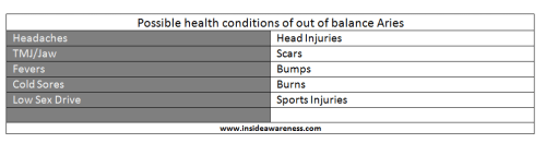 Aries governs the head, adrenaline, sight, brain, pineal gland and optic nerve