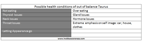 Taurus governs hearing, touch, smell and taste and the neck, voice and throat.